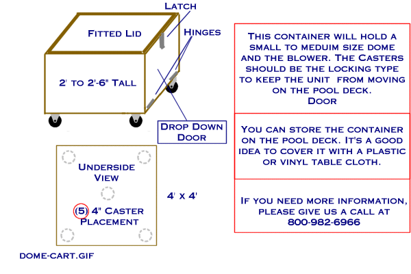 Some dome owners store their domes on the pool deck in a wooden storage box with large casters
