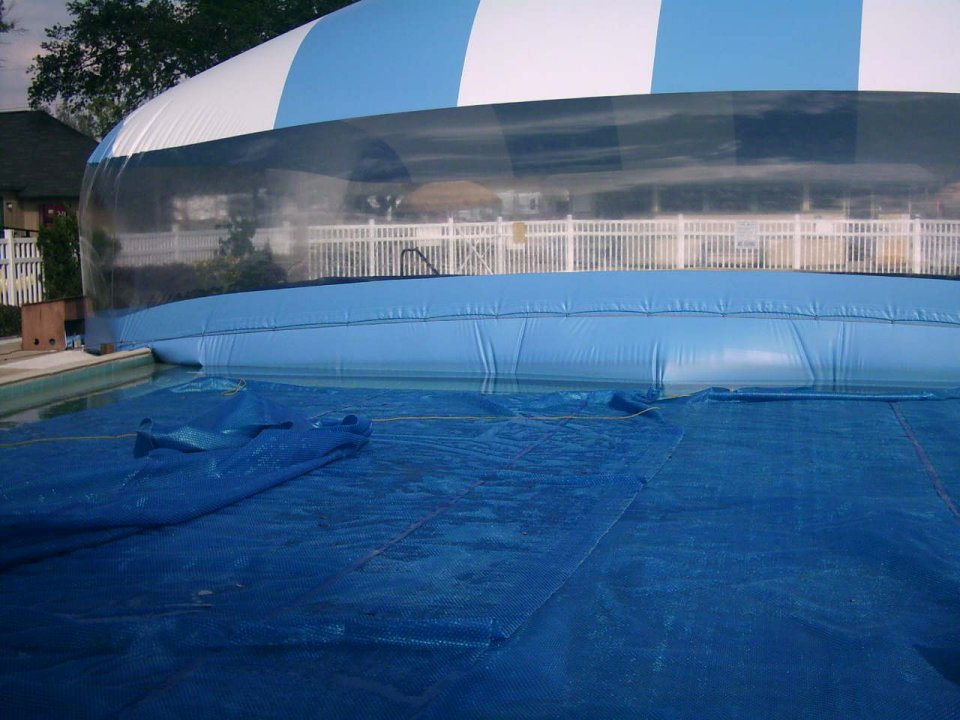 the walls of the pool dome. An additional piece of vinyl is mounted to